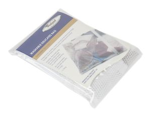 Delicates Laundry Wash BagThis Delicates Laundry Wash Bag protects bras, panties, hosiery and all small items from snags, tangles and tears while machine washing and drying. Durable, fine mesh bag lets soap and water flow through easily for optimal cleansing. Zip closure keeps delicates securely in bag. Size: 15-1/2" x 16-1/2".