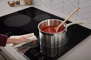 Induction technology keeps the cooktop surrounding the elements cool, helping prevent baked-on messes. With fewer messes, you can clean the touch-activated controls on the cooktop as easily as you use them.