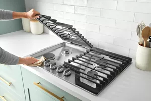 36-inch Gas Cooktop with 5 Burners and EZ-2-Lift™ Hinged Cast-Iron Grates and GriddleCook everyone’s favorite at once thanks to a Fifth Burner for greater Cooking Flexibility. This 5-burner cooktop includes a SpeedHeat™ Burner for a quick boil and a 2-in-1 Hinged Grate to Griddle so you can easily swap cooking surfaces. Then cleanup is quick and easy with the EZ-2-Lift™ Hinged Cast-Iron Grates.