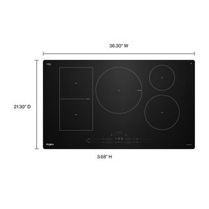 36" Intelligent Induction Cooktop with Temp Cook™ Technology and WipeClean™ CoatingThe Whirlpool Intelligent Induction Cooktop helps you stay on time of meal time even with life's interuptions. Temp Cook™ Technology helps you avoid burning with dual temperature sensors that monitor and maintain your heat. Smart Presets like simmer, saute, and more put favorites at your fingertip and the Flexheat™ Plus Element matches your heat to your pan size. Voice Control allows you to do so hands-free with Alexa™ or Google™ when connected and WipeClean™ Coating simplifies cleanup so you can wet, wait, and wipe away the mess after meals.