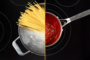 Customize your element size for large or small cookware and boil 40% faster* with two FlexHeat™ Dual Radiant Elements, designed with a 6" inner ring and 9" expandable outer ring. *When comparing the 9" element to the standard 6" element on the same unit.
