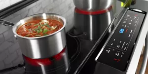 Control the heat without the guesswork. The knobless design uses up/down arrows to select the temperature you need, while heat level indicators show when you are simmering and melting.