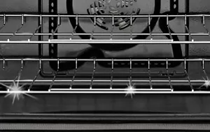 A concealed bake element placed under the floor of the oven creates a smooth surface at the bottom of the oven for easy cleaning.