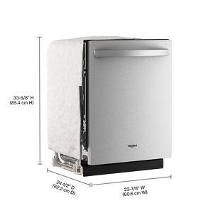 Whirlpool® 24-Inch Top Control Dishwasher with Total Coverage Wash and Auto Open Air Dry in Fingerprint Resistant Stainless SteelGet clean, dry ready to use dishes with this 24-inch stainless steel dishwasher. Total Coverage Wash delivers a corner to corner clean on all three racks, and Auto Open Air Dry lets fresh air in after the dry cycle for dry dishes, even plastics, right from the rack. Run a full wash in a fraction of the time with 90 Minute Normal Cycle, let Intelligent Sensors automatically detect settings for different loads, and get more room when you need it with Flexible Loading Options.