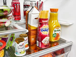 Make room for tall items. The front adjusts and slides out of the way, creating space for things like a 2-liter bottle or large salad bowl.
