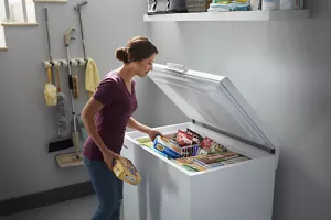 16 Cu. Ft. Convertible Chest Freezer with 3 Storage LevelsKeep food visible and easy to access in this 16 cu. ft. chest freezer with 3 storage levels. The convertible freezer to refrigerator adapts to your changing needs and features an LED freezer light to help you see your food clearly. And with the Garage Ready in Freezer Mode feature, put this garage ready chest freezer where you want it.