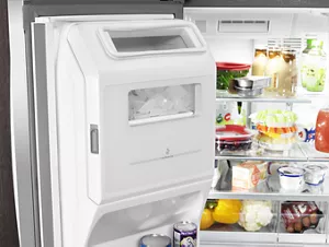 Get an extra full shelf in the refrigerator with an ice bin that's been moved to the door.