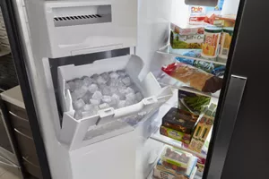 Get an extra full shelf in the freezer with an ice bin that's been moved to the door.