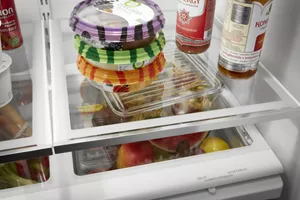 Store more items on each shelf with wall-to-wall frameless glass shelves in the fridge and freezer, which offer greater storage flexibility.