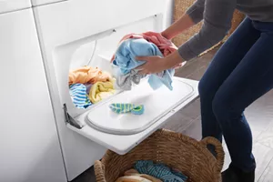 Easily transfer loads from the washer to the dryer and from the dryer to the laundry basket without worrying about clean clothes falling on the floor with this wide-opening door.