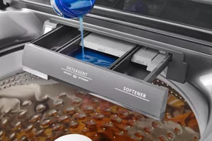 Add detergent, bleach and fabric softener to their designated compartments so each gets dispensed at just the right time during the cycle.