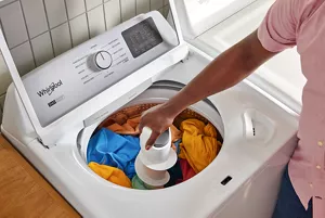 4.2–4.3 Cu. Ft. Whirlpool® Top Load Washer with 2-in-1 Removable Agitator and Soft Close Glass LidChoose how you handle each hamper with the Whirlpool® Top Load Washer with 2-in-1 Removable Agitator and Soft Close Glass Lid. The 2-in-1 Removable Agitator lets you choose how you wash. Easily swap in the agitator to help with soils or remove for extra capacity to fit large & bulky items. Presoak helps you to gently release soils with a 30 minute presoak and wash all in one cycle. Sanitize cycle cleanses loads with increased wash temps and Oxi. Cold Water Wash allows you to get a thorough clean and save on energy bills.